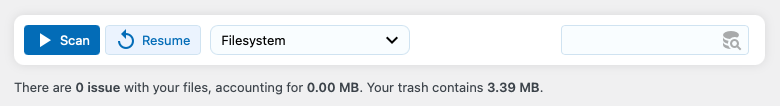 If you see the Resume button, it means your last scan did not complete entirely. You can hover your mouse over the button to see at which step the scan stopped before the dashboard was loaded this time.